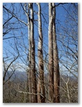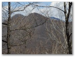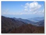 浜立山の山頂に戻りました。そこに腰を下ろすと、ウサギやキツネのように、静かな林に隠れた気分。熱いお茶と調理パンを取り出して、お昼にしました。山頂からは、枝越しですが、双耳峰の大谷ヶ丸、その右肩に黒岳、さらに右に離れて滝子山を望めます。この境地は、「徐如林」(しずかなること林の如く)だったとは、景徳院に下り立ってからの感想。平穏な山頂で十分に体力を養生し、滝子山に向かいました。