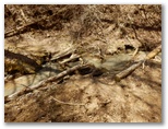 鎮西ヶ池では、また人の声が聞こえるか、耳を澄ましましたが、何も聞こえませんでした。先回聞いたのは、空耳だったのでしょう。カラマツ林の防火帯は相当に雨を含んだようで、やさしくそっと歩かないと、地表が崩れました。すみ沢の源流域では、白い川床を行く清流がさらさら、キラキラ。天に響くような小鳥の声と相まって、「あ、ここも桃源郷だ」と思いました。いつかこの沢の上流域で、じゃぶじゃぶ歩きをしてみたい気がします。