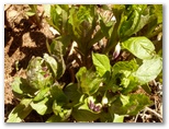 取り付きから1時間10分ほど歩いたころ、傾斜のなだらかな場所がありました。後に写真のGPSデータを確認すると、そこは標高1305mあたり。南面に座れば、日は当たるけれども風の当たらない、休憩の好適地です。ヤマレコによれば、浜立山の「付近の山」の一つに、[0.6km]寺平(てらでえろ)という地名がありますが、その距離から判断して、きっとここでしょう。地理院地図の1246m地点のずっと上の方です。