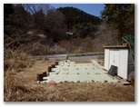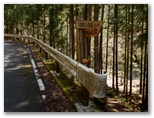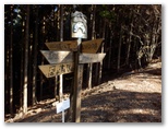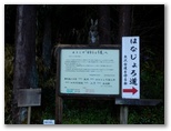県道にはゲートがありました。その手前から道が右に分岐し、川原の諸施設に通じています。この分岐点の道標に「はなじょろ道入口0.5km」とありました。私はゲートを抜けて県道を進んだのですが、ふと気になりました。「詳細図(2013年11月発行版)」では、川原の道の方に、はなじょろ道の入口が示されています。また間違えたかな? そこで先ほどの分岐まで戻って道標の方向をもう一度確認すると、県道の方向をしっかりと指していました。またタイムロスです。