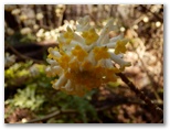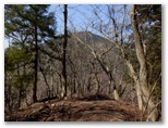 はなじょろ道は、左岸のコンクリート階段から取り付きます。455m峰の南斜面を経て尾根に上がるのですが、ずっと落葉樹林帯なので日差しがいっぱいでした。東コースが植林帯ばかりで展望のないのと対照的です。こちらはキブシ、マメザクラ、フサザクラ、ミツマタなども見られ、花ゼロ道ではなくてよかったと思いました。地表にフキやスミレ、シュンランでも咲いていたらいいと思ったのですが、花らしいものは地表に見られませんでした。