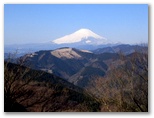 これより「詳細図」が「はなじょろ道西コース」としている尾根を下ります。5分ほど行くと、堂々たる椹(さわら)の木と説明板が立っていました。幹に記念のタッチをします。さらに1分先の富士見台で、すばらしい眺望が待っていました。真っ白な富士山。前衛には放牧場を持つ大野山。立体感豊かな景観です。あの寒い峠ではなく、ここで休憩すればよかった! ここがはなじょろ道の圧巻、幸せの花嫁も、そうでない花嫁も、富士の姿を瞼に焼き付けたことでしょう。