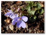尺里峠に下ります。途中の真弓ヶ丘で、きょう初めて地面に咲く花を見ました。このあたりは、もうひと月もすれば、ヤマザクラが美しいところです。バスに乗り遅れないよう速足で下りて来たので、尺里峠には早めに到着しました。ここからは、虫沢へ舗装された車道を下ります。その7分後、すばらしいパノラマがありました。蛭ヶ岳から大山のさらに先まで、表丹沢を一望できます。これは登山地図に記すに値するでしょう。その後、虫沢古道と車道を交互に歩きました。