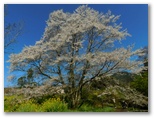 秦野市 ◆絶好の花見日和。しかも、この好天は一日限りだという。ならば今咲いている桜を全部訪ねたい。こうして「丹沢南麓花見遊山の巻」となった。◆蓑毛の淡墨桜は、すでに半分ほど散ってしまったのではないか、と思った。花弁が5枚揃っている花がほとんど残っていなかったのだ。でもこのタイミングで行ったからこそ、淡墨色の花をたっぷりと愛でることができたのだと思う。◆水無川の桜並木はソメイヨシノ。花びらがひらひらと舞う、長い長い散歩道。人がいなければ歌を歌いながら歩きたい散歩道だった。◆白泉寺の枝垂桜も正に見頃だった。枝垂桜の木を英語で"weeping cherry tree"と呼ぶことに納得。誰もいない静寂の境内で、束の間ながらも、彩のある夢空間に遊べた。◆締めは大山桜。ほぼ満開だったが、午後は日陰となって寂しそう。皆様、午前中に行って愛でてください。