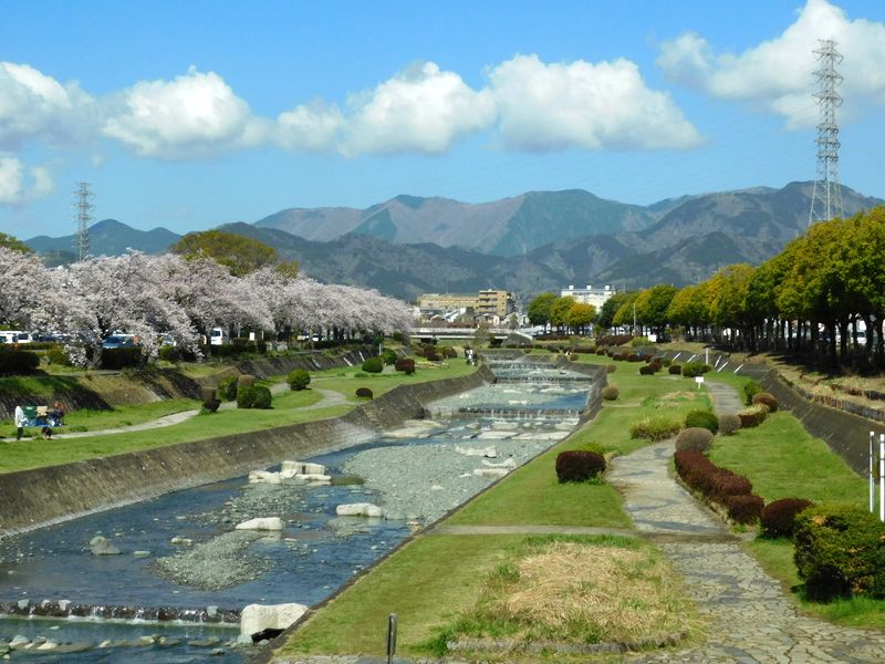 -- 水無瀬橋にて、正面に檜岳山稜を望む。