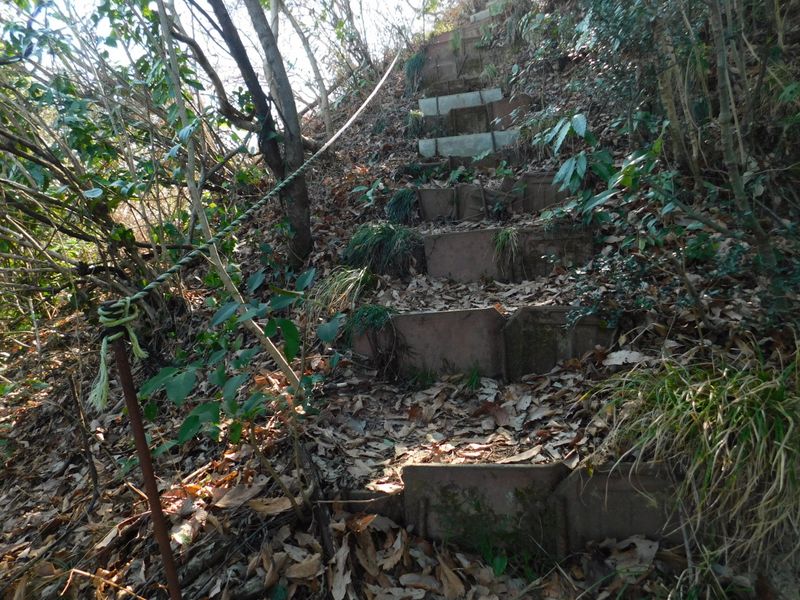 -- いきなりトラロープ付き急階段。11:40