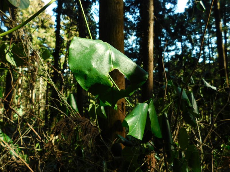 -- キジョランの虫食い葉。あの幼虫はいなかった。13:24