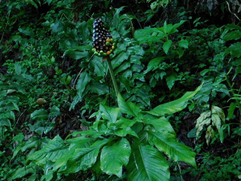 -- 実が残り少なくなったマムシグサ。