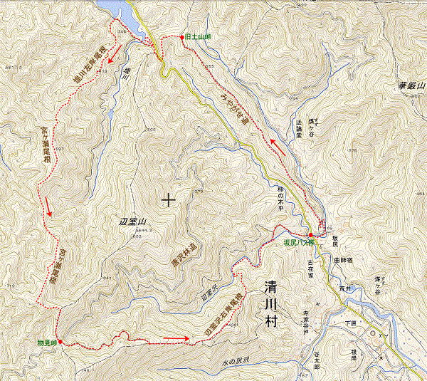 地理院地図: 坂尻 , 旧土山峠 , ルート図
