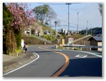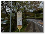 1時間に1本しかないバスの時刻が迫っていました。やむを得ず通り抜けます。振り返ると、「関係者以外立入禁止」と大きく書かれていました。「忍者返し」まであるのは、設置者の強い意志表示でしょう。したがって、詳細を記述することは控えます。「立入」ではなく「立出」だとは言え、ここは別のルートを探しましょう。ここから下り坂を走って、バスの予定時刻ぴったりに、坂尻バス停に滑り込みました。三角形の完成です。