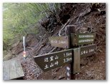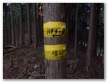 鍋嵐東稜に1箇所、ロープ場があります。そこはミニキレットで、特に南面の谷は底なしかと思えるほど深く、急激に落ちています。通常は問題なく直進して登り返せるのですが、あいにく、たくさんの小枝を持つ大きな折れ枝が行く手を塞いでいました。やむを得ず、その大枝に潜り込み、どうにかこうにか通り抜けました。そこは石の祠のある三叉路のすぐ西です。少なくとも、この折れ枝が片付くまでは、「この先、登山道ではありません」の立札を尊重しましょう。