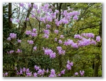 まるでハイウェイのような道を、私は小走りに下りて行きました。私の登山歴で、こんなに歩きやすい道は、初めてです。近々皇太子殿下が歩かれる、と言われたら信じるかも知れません。途中から、ヤマザクラの白い花びらが、黒い絨毯にたくさん撒かれていました。おお、御姫様ロード、踏むのがもったいない! 一気にジグザグ道を下り終えると、「清川宝の山」の碑を再び見て、辺室沢の広い川原に下り立ちました。大きな堰堤のすぐ上流です。本当に夢みたいでした。