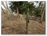 立ち上がり、物見峠に向かいます。歩き始めるとすぐに、行き止まりでした。でもよく見ると、真新しい倒木が道を塞いでいるだけ。山では何があるか分らないものです。物見峠では、辺室山の中腹に刻まれた唐沢林道を一瞥し、煤ヶ谷方面へと迷わず進みました。崩落個所もあり、足下をよく見て歩くべき道です。突然、ガツン、ガツンと飛び跳ねながら、岩石が落ちてきました。怖い! 上にいたシカが落としたのでしょう。ヒヤヒヤ。危険はどこにでもあるものです。