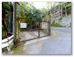 堰堤の右岸に白い手すりが見えたので、行って見ると、作業道がありました。以後、楽々と歩いて、水道施設の横を通り過ぎました。辺室沢水道橋を渡り、坂道を上ります。すると、道を閉鎖するゲートがありました。しっかり施錠され、歩行者用の通路もありません。ゲートの端を回り込もうにも、「忍者返し」のようなものが取り付けられています。これは困ったことになりました。思いがけず現れた難関を、どう乗り越えたらいいでしょうか。