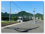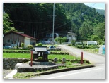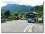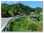 無生野行きバスは、県道35号、四日市場上野原線の狭い旧道を走り抜けます。対向車が来たら困りそうな区間も多いのですが、一般車両は広い新道を走るようです。道幅いっぱいに走るバスの旅は、秘境感たっぷり。どうしてもっと小さいバスを使わないのかな? 車窓からは、いたるところでテングチョウの乱舞が見られました。奥牧野に至り、ようやく広い道になって一安心。そして、途中での乗降客もなく、終点無生野で私を降ろすと、折返所へと走り去りました。