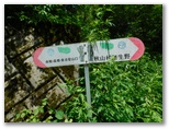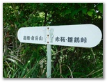 次は、雛鶴姫一行が登ったかもしれない、雛鶴峠に向かいます。県道35号をさらに西へ歩き、ヘアピンカーブの頂点にある三叉路にやって来ました。ここから右の旧道に入ります。旧道を少し行くと、また三叉路がありました。右は山道、左は車道です。ここで地図を見ないで、何か勘違いしました。右の山道(実は楢峠への廃道)に進むと、直ぐにどなたかの家で行き止まり! 戻って車道を進むと「赤鞍・高畑・倉岳登山口」を指す、大月市様式の道標がありました。アホ!