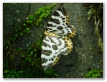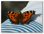 旧道を登って行くほどに、秋山山稜(前道志)と無生野の里をよく望めるようになりました。道路わきは、白いウツギの花盛り。蝶や蜂などを集めています。時々、私の体にとまる蝶もいました。汗をなめに来た様子でもありません。新鮮な個体が多く、無邪気そうに見えます。それにしても、テングチョウが多い! 数十頭のテングチョウが群がっているウツギもありました。日陰には蛾もたくさんいます。低地では最終盤のキアシドクガも、ここではまだ元気そうでした。