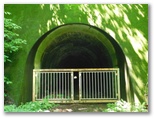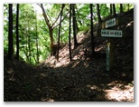 雛鶴神社から50分、旧雛鶴トンネルに到着。蝶よ花よの漫遊モードで来たので、時間がかかりました。旧雛鶴トンネルは、簡単なゲートで閉鎖されていますが、中に入ることはできそうです。今、入る気にはなりませんが、突然の雷雨などには、シェルターとして利用できるでしょう。トンネルの反対側から心地よい涼風が通り抜けてきました。その向うには、リニア実験線の基地があります。トンネル入口の左、「←ハイキングコース」と書かれた道標から、山道に入ります。