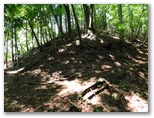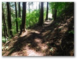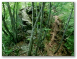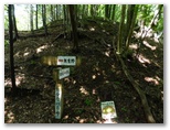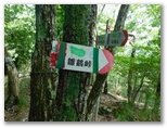 さて、高畑山から中央本線側への下山路はいくつかあります。今回は、まだ行ったことのない大桑山を経て猿橋駅に至るルートを選びました。大秋日山を経て幡野入口バス停に下りることも、計画段階では考えてみましたが、今はヤブの濃くなる季節なのでボツ。無難な朝日小沢に下りることにしたものです。少々歩き足りないような気もしますが、経験上、暑い日は涼しい日の1.5倍ほど疲れます。紅葉の季節なら、その名も輝かしい大秋日山を訪ねてもいいかも知れません。