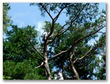 雛鶴分岐で秋山山稜の縦走路に入ると、わずか2分で高畑山頂でした。「秀麗富嶽十二景:九番山頂」の標識があります。残念ながら、御正体山の向うに見えるのは雲ばかり。そして秀麗富嶽の写真は、もっと残念。落書きでキズだらけです。前回2009年に来た時、すでにこうなっていました。さて、時間にゆとりがあるので、のんびりしてゆきましょう。雛鶴峠の麓の「樹齢三百余年の二本の老松」(津久井三姫物語)は判りませんでしたが、高畑山頂には老アカマツがあります。