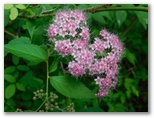 斜面の崩落を見て、さらに先ではコンクリート吹き付けの擁壁が続きます。林道歩きに飽きて、朝日小沢の集落が近づくと、マタタビやシモツケの花に慰められました。人里に入ると、郷愁を誘う菜園兼花畑。百花繚乱の今、蝶もたくさんいました。そして朝日小沢上(あさひおざわうえ)バス停にゴールインすると、またまたテングチョウの大乱舞。腰を下ろし、クロックスに履き替えます。しばしバスを待つ、幸せな時間。きょうもすてきな山旅でした。感謝。