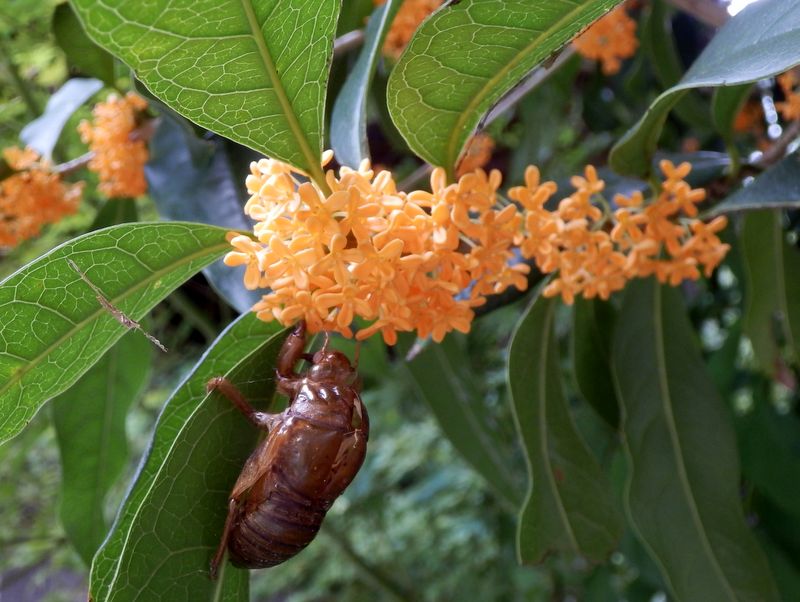 -- キンモクセイと空蝉(ぬけがら)。10:14