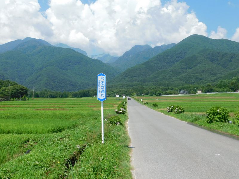 -- 「べるが通り」を甲斐駒ヶ岳方面へと進む。
