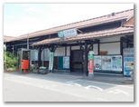 改札口で遠くにいた駅員さんに青春18きっぷを見せたら、そのまま通ってくださいとの合図をくれたので、簡易Suica改札機の横を素通りしました。でも、まだハンコを押してもらってありません。成り行き任せにしていると、不正乗車と紙一重の立場になりかねません。改札口に戻り、ハンコを押してもらいました。帰りの電車の時刻表を確認しておきます。駅舎を出ると、すぐ右手に「北杜市民バス」の乗り場がありました。