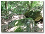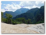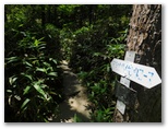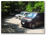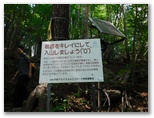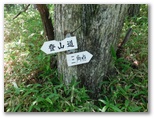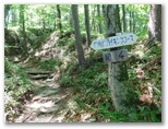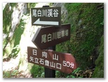 白砂の庭園で40分余り過ごしました。下山の途に就きます。再び標識の数字を見ながら、スタコラ、スタコラ。岩場もザレ場もヤブもない、ありがたい道。整備してくださった方々に感謝です。「0合目」の矢立石登山口で小休止し、知らない人と雑談しました。引き続き、尾白川渓谷駐車場に向かって下ります。途中の林道で、小型バスに抜かれました。セミの声は、ヒグラシとアブラゼミに替わっています。バスの時刻に合わせ、時間調整のため、ペースを加減しました。