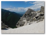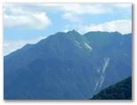 絵のようによくできた庭園に見とれながら、お昼にしました。今度は花に目が行きます。キバナノヤマオダマキ、ヤハズハハコ、キヌタソウ、ヤマホタルブクロ、等々。未開花でしたが、シオガマギク(あるいはトモエシオガマ)も見られます。昼食を終えると、雁ヶ原方面に行ってみました。甲斐駒ヶ岳がドーン、鳳凰三山がジャーンと現れます。富士山もうっすらと望めました。さらにザラメ道を進んで小峰に登り、清浄感に満ちた時間を楽しみました。