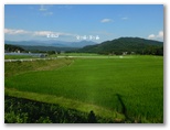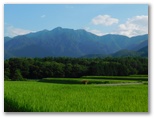 尾白川渓谷駐車場に車が増えていました。午後4時で、80台以上。まだ渓谷で遊んでいる人々が多くいるのでしょう。私は「名水公園べるが東」バス停に向かいます。下り基調なので、思いのほか足が進みました。そして再び美しい緑の水田地帯へ。田んぼが私に「お帰り!」と言っているような気がしました。モンキチョウも相変わらずテフテフ。広大な水田をよく見ると、勾配の緩い棚田に造られています。その彼方に茅ヶ岳・金ヶ岳、金峰山。そして八ヶ岳のシルエット。