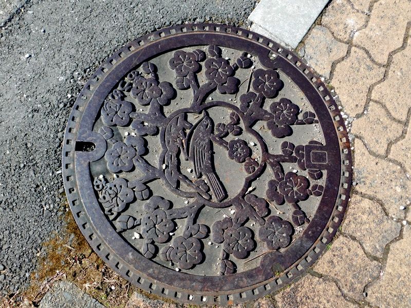 -- 青梅市のマンホール:梅に鶯。