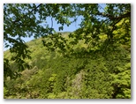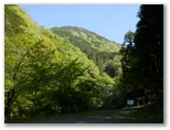 新松田駅前から寄行きの一番バスに乗って、終点で下車。登山者は私のほかに、単独男性が一人だけ。天気はGWの終わったきょうも上々の五月晴れ。さっそく寄大橋に向かいます。中津川沿いに、ほぼ真っ直ぐに延びる県道を北へテクテク。正面に平坦な稜線を持つ山が見えますが、あれがきょう最初に登る雨山でしょう。朝日を受けた山々は、様々な緑色を織り交ぜ、所々に藤色のアクセント。これからあの美しい世界に入って行くのかと、思うだけでワクワクします。