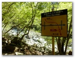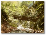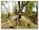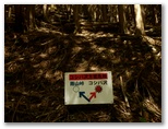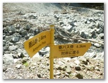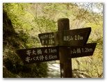 いずれも了解した上で、ここに来ましたが、気を引き締め直します。これより先、林道秦野峠に下り立つまで、安全に下れるエスケープルートがないことも忘れてはなりません。準備運動を念入りに行い、登山道に入りました。すぐに気が付くのは、新旧の道標が多いこと。間違えて作業道や周遊歩道に入り込まないように、「雨山峠」の三文字を確認しながら進みます。第1回目の渡渉点の直前には、黄色に塗られた鉄製の新しそうな道標がありました。