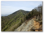 バスの時刻を考え、少しでも時間を稼ぎたかったので、ダルマ沢ノ頭はパス。林道虫沢線を30分弱歩き、鉄階段の反対側からシダンゴ山に取り付きました。途中で女坂を分けますが、時間が惜しかったので男坂を直登。あっけなく登頂したシダンゴ山でしたが、眺望は抜群でした。360度、山頂の周囲に高い樹木のない、坊主頭ならではの特典です。きょう歩いて来た檜岳山稜が手に取るように望め、しばし感慨に浸りました。きょうはいい山歩きができました。