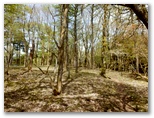 秦野峠の標柱には、標高840mとありました。残念、標高差にしてまだ半分も下っていません。一休みして沢を越え、登り返すとき、脚の筋肉がほぐれるような快感を覚えました。日影山からの道を右から合わせ、右の鹿柵(植生保護柵)に沿って進むと、左にも鹿柵が現れました。左右を有刺鉄線に挟まれた狭い道は不快そのもの。我慢して通り抜け、ようやく林道に下り立ちました。林道秦野峠と呼ばれる地点です。ここで地図を取り出し、どの道を行くか考えました。