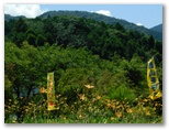 ヤマレコ ◆ヒオウギの咲く頃になった。美しい花だが、大暑の頃に咲くのが悩ましいところ。「危険」レベルの暑さが予報された中、今朝になっても行くか行かないか逡巡して、出発が遅くなってしまった。 ◆国道412号の傍にあるヒオウギ畑に到着すると、ちょうど正午のメロディーが鳴った。ヒオウギ祭りの会場で一人スタッフを務めていたおじさんから、「暑いのによく来られた」と歓迎される。キュウリを好きなだけ持って行っていいよ、とプレゼントされた。 ◆お話を聞くことができた。--- このヒオウギ畑にもシカが来るが、ヒオウギは不味いのでシカが食べない。華厳山では食べ物が他になくて、シカもしかたなくヒオウギを食べた --- のだそうだ。 ◆宮ヶ瀬のダムサイトに移動。放流が始まると、たちまち水煙に巻かれて涼しくなった。わずか6分間の放流だったが、感動し、興奮した。低学年児たちが多く来ていて、明るく可愛く活気に満ち、何とも楽しい時間に。◆そのまま帰るのは惜しいので、(半原)高取山と仏果山に向かった。宮ヶ瀬湖畔からの急登をこなすと、ダムサイトを一望できるビュースポットがある。何と、ここにもヒオウギがたくさん咲いていた。ざっと数えても100株以上あり、私にとっては「大発見」したような感激のサプライズ。どなたが植えたのだろう? ◎ 本厚木駅 11:02 == 11:53 平山坂上バス停 11:55 --- 12:00 ヒオウギ畑12:28 --- 12:33 平山坂上バス停 12:43 == 12:55 愛川橋バス停 12:55 --- 13:02 あいかわ公園 13:33 --- 13:45 宮ヶ瀬ダムサイト 14:40 --- 14:43 水とエネルギー館 14:47 --- 14:52 高取山登山口 14:56 --- 15:11 ヒオウギの咲く展望地 15:17 --- 15:45 送電線下の展望地 15:48 --- 16:33 高取山 16:49 --- 18:31 野外活動センター前バス停 18:54 == 19:35 本厚木駅 全5時間24分 24,453歩 単独 ❀❀❀ ❢❢❢