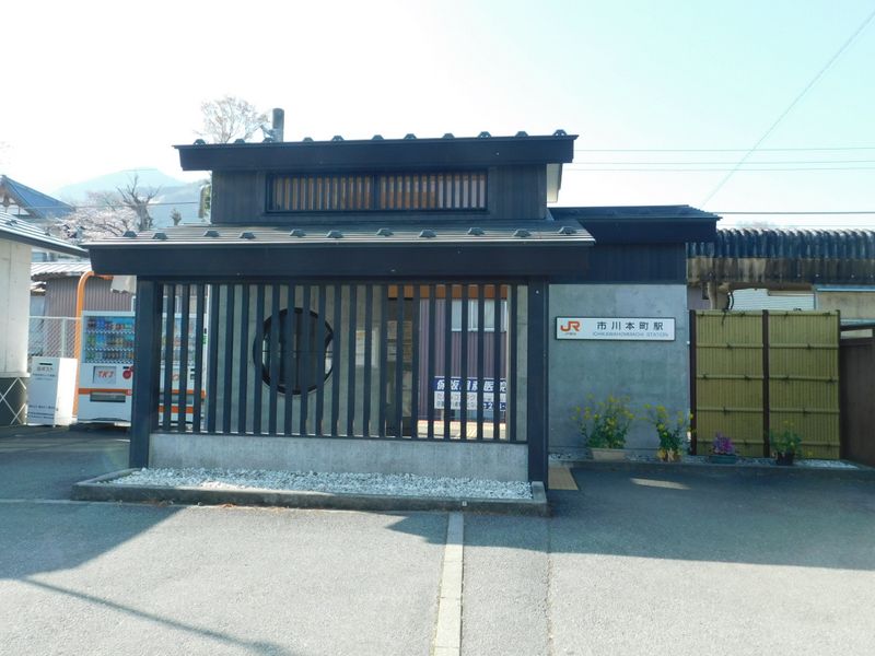 -- 市川本町駅。左に自販機とトイレがある。8:25