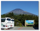 8時15分、バスが御殿場口新五合目に停車すると、ほとんどの乗客が降りました。車内に残ったのは3人ほど。そして5名ほどの家族連れが乗り込みましたが、富士宮口から登って御殿場口に降りるのでしょう。バスは太郎坊まで徐行しながら下り、その後は樹林帯をほぼ水平に快走して、予定時刻通り、水ヶ塚公園に到着しました。私はバスから真っ先に下りると、真っ青な空と、右わきに宝永山を従えた富士山の雄姿を見上げました。