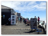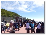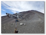 9時29分、富士宮口五合目に到着。階段を上がって、レストハウスのテラスに行くと、登山者でいっぱいでした。皆さん、高所に体を慣らすため、休んでいるようです。ガイドから説明を受けるグループや、レンタルの登山用品を受け取る人などもいます。いずれの必要もない私は、直ちに登山を開始。登山口には、大きな文字で、「富士山表口五合目 標高2400M」と書かれていました。富士登山の4ルートのうち、最も標高の高い登山口が、この「富士宮口五合目」です。