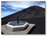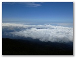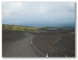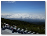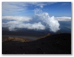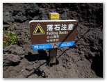 はじめ、溶岩のゴツゴツした道を歩きますが、これはすぐに終わりました。また富士宮ルートでは、登山路と下山路が共通なのですが、「登り優先」という山の約束を知らない下山者が多くいます。バスの車内ビデオで、山の基本エチケットを教えているのも、富士山ならではでしょう。ともあれ、すでに森林限界の上で、しかも晴天なので、展望は壮大です。ただ雲海も広大で、駿河湾、伊豆半島、御前崎などがすっきり見えなかったことだけが、ちょっと残念でした。