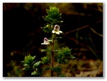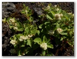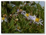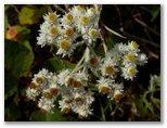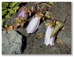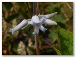上塚からの下山路が分からなかったので、二ツ塚分岐の道標を目標にして、斜面を適当に下りました。ついでに下塚にも登っておこうと思い、二ツ塚分岐から登ったのですが、あいにく濃いガスに包まれて、眺望は残念。山頂に立つ「始祖」の石碑だけ見て、すぐに下りました。あとは、大石茶屋を目指して下るのみです。次のバスまでの時間はたっぷりとあるし、早く下ってはもったいないので、山野草を探しながら、ゆっくりと最後の行程を楽しみました。
