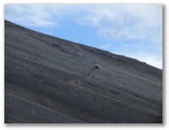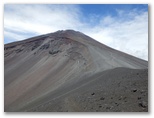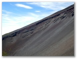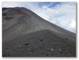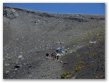 火口底で休憩していた3人家族が立ち上がりました。お父さんが男の子を背負っています。時々はお母さんと交替するのでしょうか? きっとすてきな家族なのでしょう。無事の下山を祈ります。さて、火口底からは馬の背に向かってひたすら登ります。風が強くなりました。この風は、宝永火口特有の現象でしょうか? それは分かりませんが、登り道の追い風なので助かります。砂礫を踏む足がズリ下がるので、ステップにやや損失感がありますが、大したことはありません。