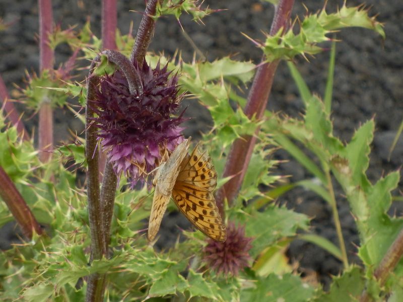 -- オオウラギンスジヒョウモン。後翅がボロボロ。14:26