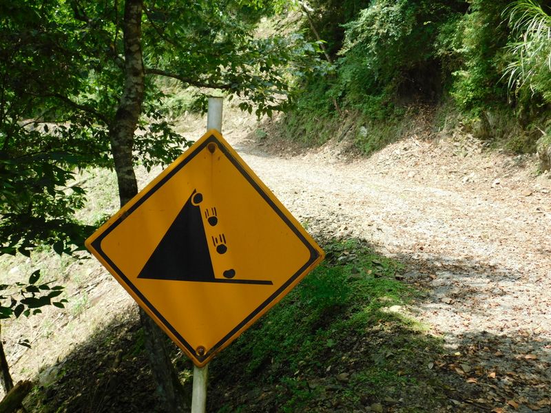 -- 見覚えのある標識:頭上落石注意。12:05