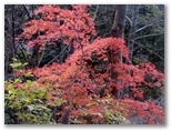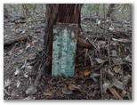 取り付きからおよそ1時間、モミジの美しい小峰に立ちました。地形図にある711m峰です。ここを勝手にセブン・イレブンと命名。リュックを下ろし、熱々の甘い紅茶を飲みます。時刻はすでに11時半。空腹を感じたので、どら焼きを出してパクつきました。ここは眺望がないので、どら焼きを半分だけ食べてすぐに出発。その小峰から5分ほど登ると、神奈川県の石標が立っていました。この尾根では初めて見る人工物です。この種の標石は、その後も何か所かにありました。