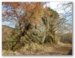 午後1時ころ、前方から熊鈴の音が聞こえてきました。単独の熟年男性です。お互いに「こんにちは。まさかこんなところで人と出会うとは!」この方は、水沢橋に駐車して、急峻な尾根(幕岩の横?)を登って東海自然歩道に至り、黍殻避難小屋まで行ってお昼を食べてきたそうです。それにしても、この山域で周回ルートを計画し、道なき尾根を軽快に下って行くとは、きっと相当な山のベテランなのでしょう。この日、山で出会ったのは、この方一人きりでした。
