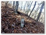 山頂標はありませんが「水源の森林」と書かれた白い杭が立っていました。今その源頭である分水嶺に立っています。ここに降った雨は神奈川県の水源とるので、私も飲んだかもしれません。リュックの中の魔法瓶にも入っているかも知れません。私はまだ熱かった紅茶を飲み、落ち葉の上に仰向けに寝て、空を見つめました。気分は爽快、枯葉のぬくもりも快適。山との接触面積を最大にして、山に抱かれる感覚を楽しみました。もちろん、ヤマビルの心配はありません。