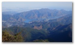 この美尾根は登るほどに、ますます美しくなって行くように思いました。ここに簡単に来ようとすれば、東海自然歩道から下ってくることもできます。でも得られる感激は、下から登ってこそ、大きく、忘れがたくなるものでしょう。針葉樹林帯に入ると、踏み跡が現れました。1039m地点(と推定される場所)を通過します。右手後方に、宮ヶ瀬湖も見えてきました。