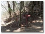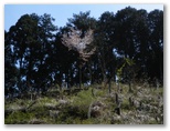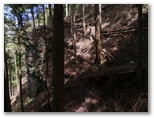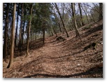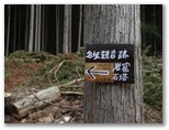 正午きっかりに山頂を辞しました。高水山常福院に向かいます。急坂を下った先、水平の尾根道でも北風が吹きすさび、デジカメを持つ手がかじかむほどでした。カメラは電池の性能が落ちないように、ベストの懐に入れます。途中に立っていた、0.1分咲き程度のヤマザクラが、つぼみをしっかり閉じているように見えました。そして高水山頂への登りに差しかかるところで、左に巻き道が分岐します。明るく、暖かそうな巻き道は、きょうの私に打ってつけだと思いました。